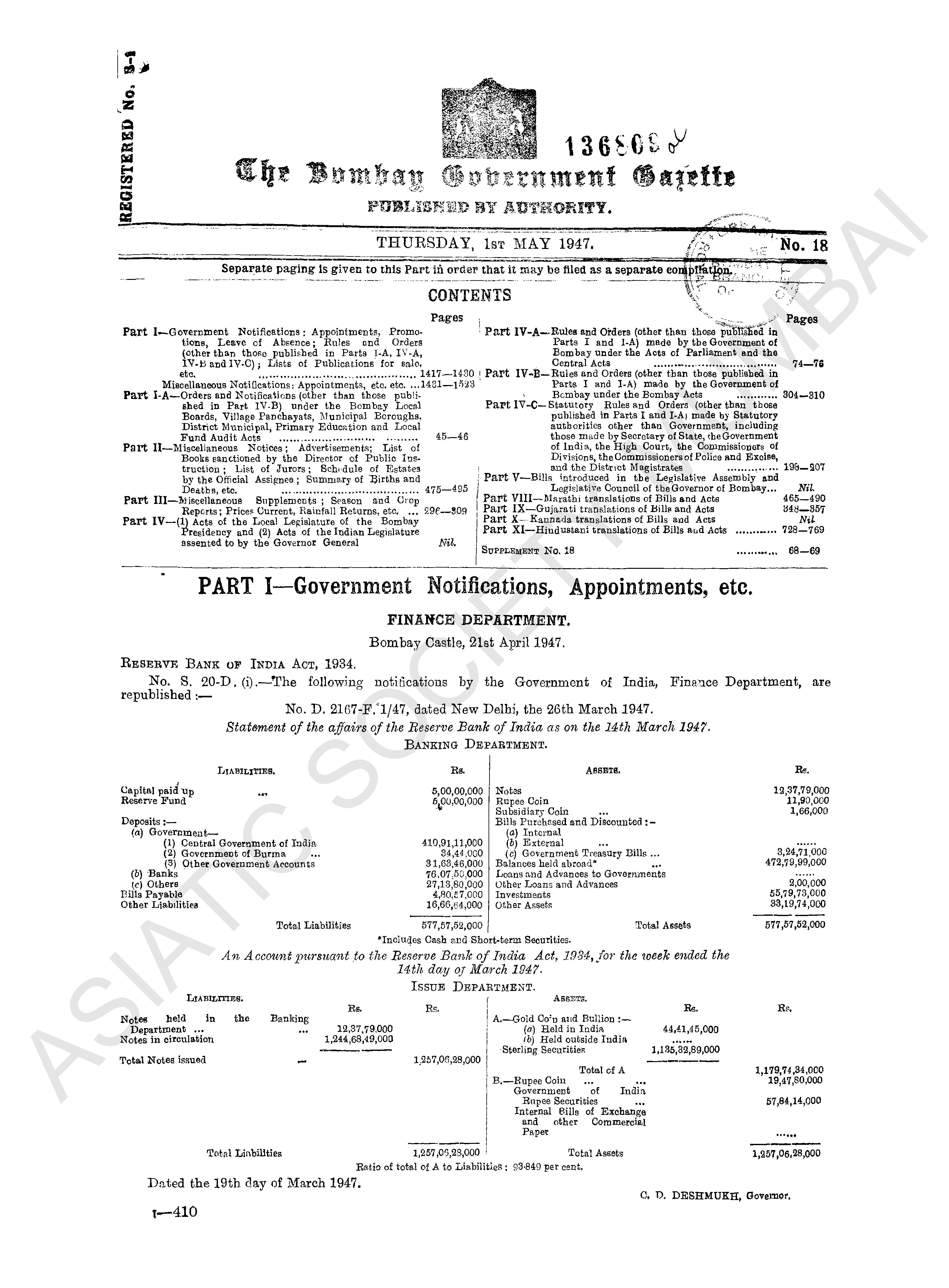 Bombay Government Gazette..., Januray 1947, Part - I.